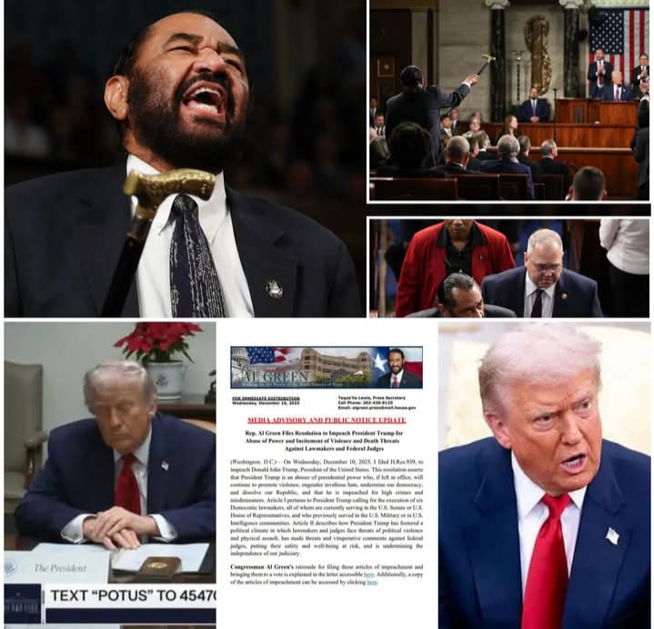 BREAKING: CONGRESS JUST PULLED THE PIN — REP. AL GREEN FILES SHOCK RESOLUTION TO IMPEACH AND REMOVE PRESIDENT TRUMP FOR ABUSE OF POWER, INCITEMENT OF VIOLENCE, AND THREATS AGAINST LAWMAKERS AND JUDGES — CAPITOL ERUPTS AS BOTH PARTIES SCRAMBLE FOR COVER