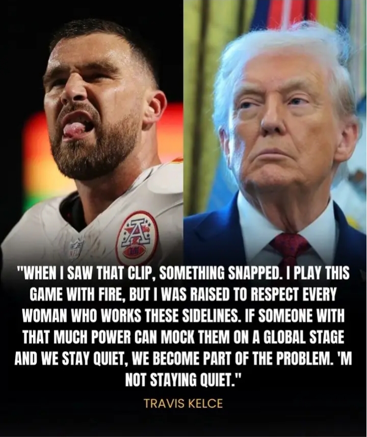 “When I saw that clip, something snapped,” Kelce said. “I’ve played this game with fire before, but I was raised to respect every woman who works these sidelines. If someone with that kind of power can mock them on a global stage and we stay quiet, we become part of the problem. I’m not staying quiet.”