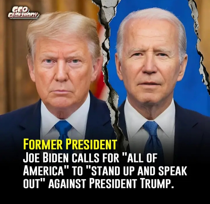 Former President Joe Biden called on all Americans to speak out against President Trump, describing the moment as a test of the nation’s values amid growing political tensions.