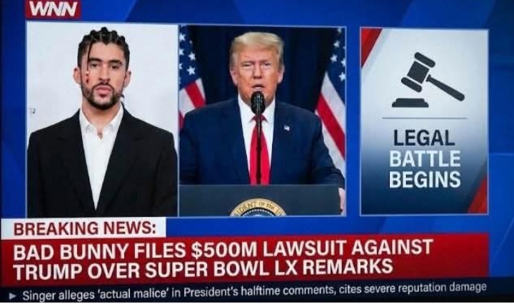 Puerto Rican superstar **Bad Bunny** has reportedly filed a **$500 million lawsuit against former U.S. President Donald Trump**, claiming that Trump’s public remarks about his **Super Bowl LX halftime performance** were defamatory and made with *“actual malice,”* severely damaging the artist’s reputation and career — according to online filings circulating in social media reports.